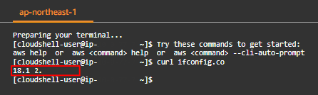 우선 CloudShell의 IP주소를 확인해야 한다. IP주소가 확인이 됐다면 접속하려는 EC2 인스턴스의 보안 그룹의 Ibound 규칙에 CloudShell IP주소를 Source로 SSH 통신을 허용하도록 설정한다.