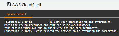 테스트 결과 CloudShell 서비스는 대략 20분 정도 뒤면 Session Timout이 발생하는 듯하다.